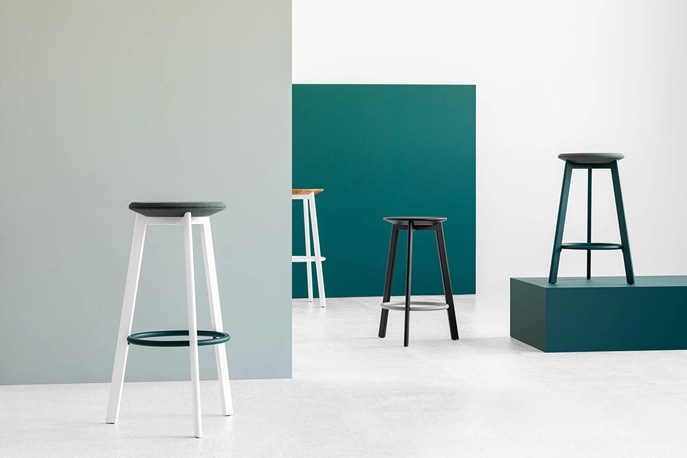Belem is a collection of modern bar stools that will fit in perfectly both in residential spaces and commercial areas such as hotels, restaurants and other food venues, and offices. Belem bar stools stand out with the unique lenticular shape of the seat with a concave surface ensuring a high level of user comfort. The steel legs, made of a semi-oval section, are joined together by a round rim adding rigidity to the structure and providing comfortable support for the legs. Both the steel base and the rims are available in a wide selection of colours from Noti's colour chart. There is also an option of combining different colours for the base and rim.